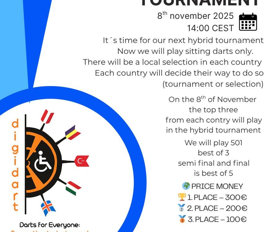 DIGIDARTS HYBRID PARA DARTS TOURNAMENT 8th November 2025 14:00 CEST It’s time for our next hybrid tournament! This time we will play sitting darts […]