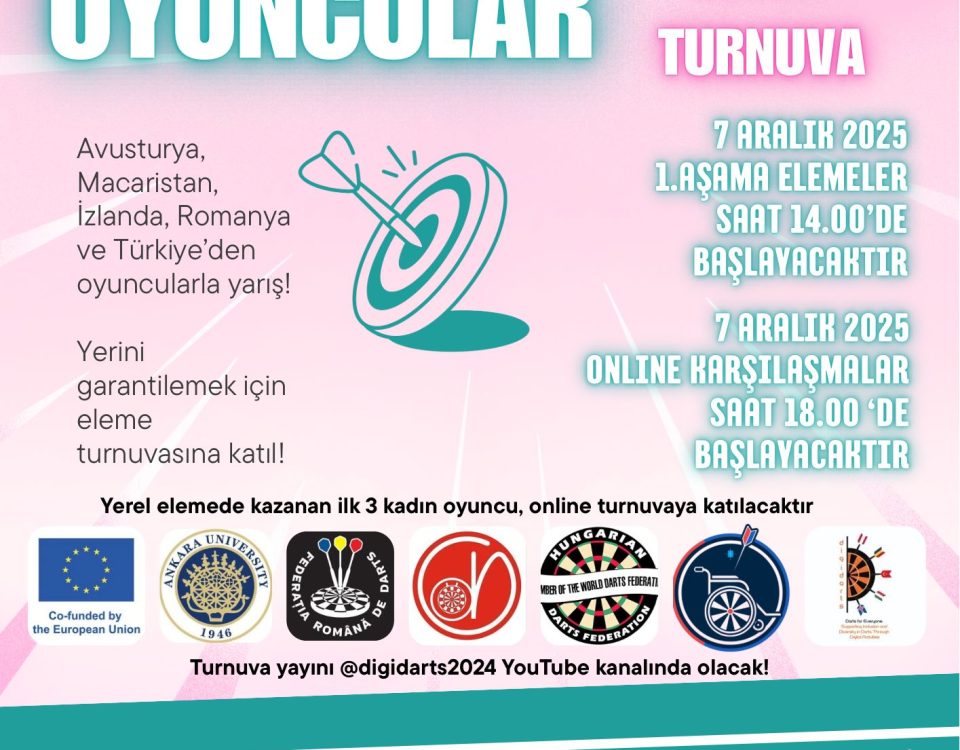 Women Players in Darts Hybrid Tournament We are pleased to announce that, within the scope of our DIGIARTS Project, we will be organizing the Women Players […]