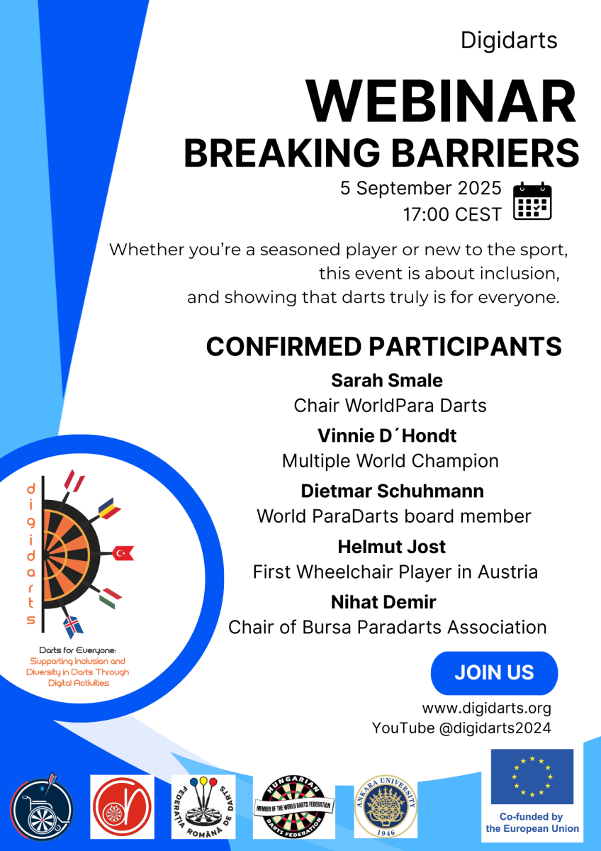 Paraplayers in Darts – A Conversation We Need to Have! As part of the Erasmus+ project DigiDarts2024, co-funded by the European Union, we invite you to […]