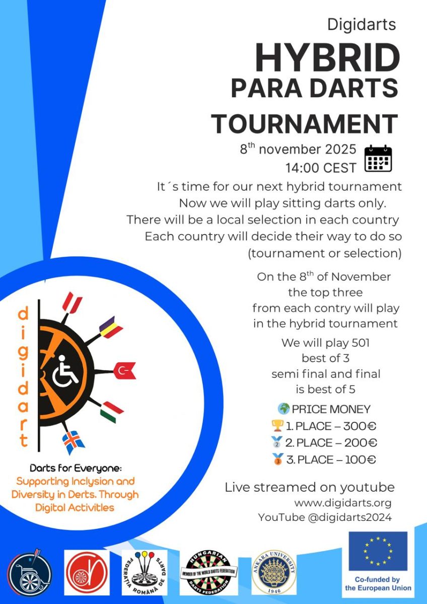 DIGIDARTS HYBRID PARA DARTS TOURNAMENT 8th November 2025 14:00 CEST It’s time for our next hybrid tournament! This time we will play sitting darts […]