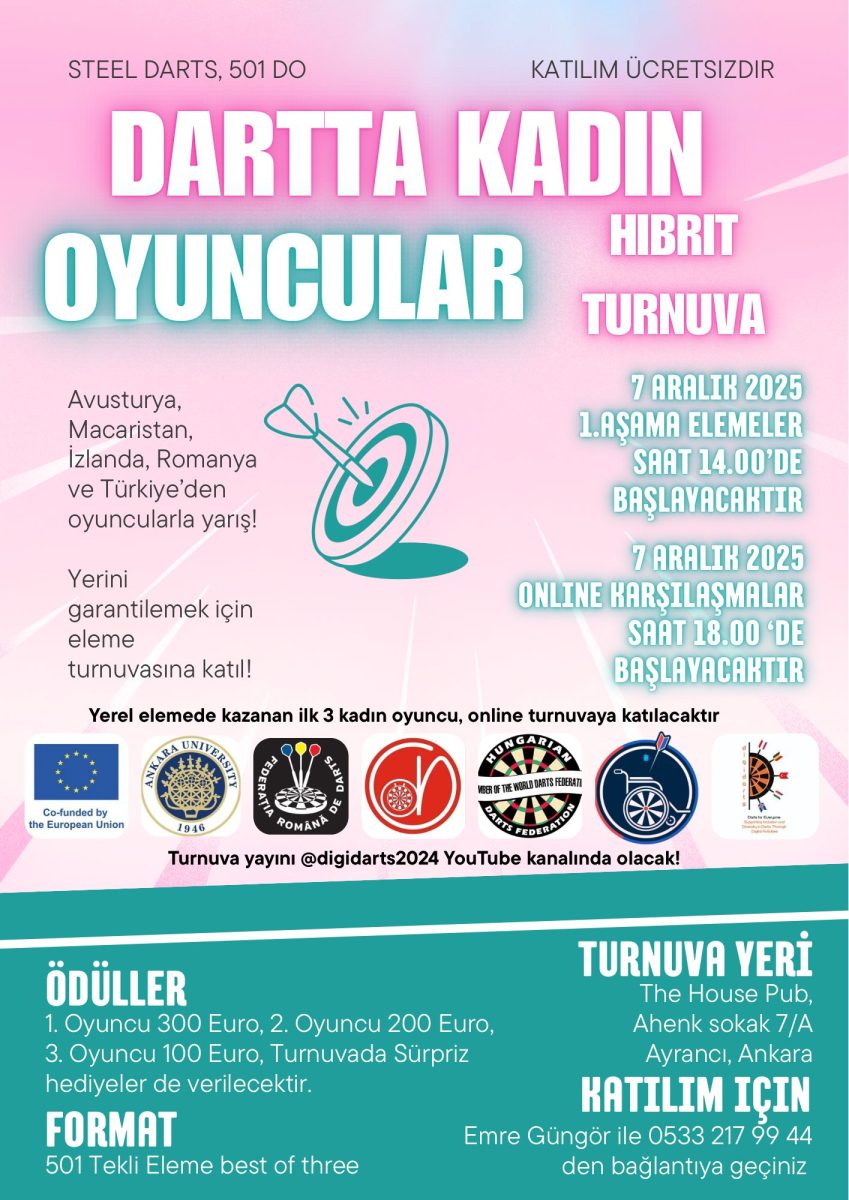 Women Players in Darts Hybrid Tournament We are pleased to announce that, within the scope of our DIGIARTS Project, we will be organizing the Women Players […]