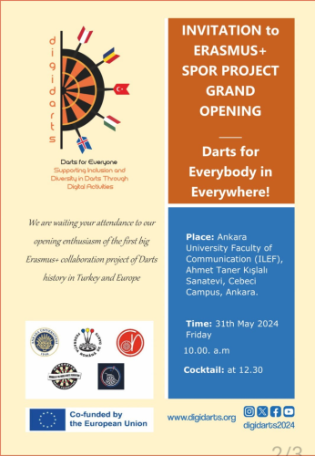 Digidarts Project has held its grand opening on 31th May 2024 in Ankara University Faculty of Communication. Over 100 people attended to the Grand Opening in Ankara from Darts world and sports world.